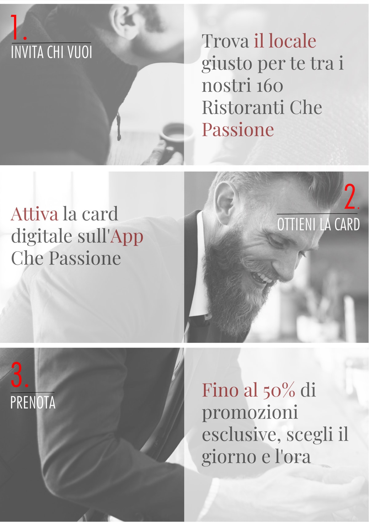 Grazie alla guida di Riccardo ora la passione non si ferma più solo in ufficio, ma continua anche ai pranzi di lavoro. Nei Ristoranti Che Passione ho trovato la convenienza e il comfort adatto anche agli incontri aziendali.