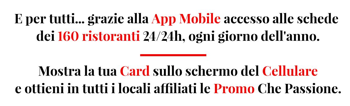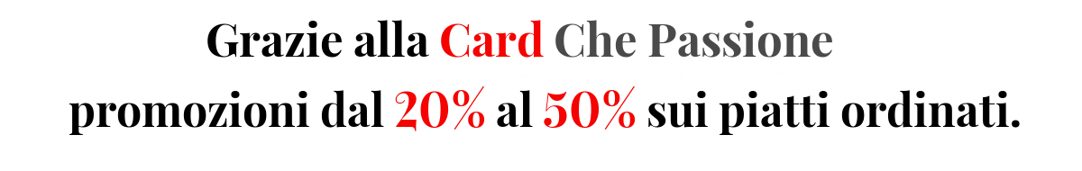 Con la convenienza della card Che Passione è impossibile rinunciare al piacere di mangiare con la famiglia più spesso al ristorante. Da quando ho la card possiamo usufruire degli sconti e mangiare bene con un ottimo rapporto qualità prezzo.